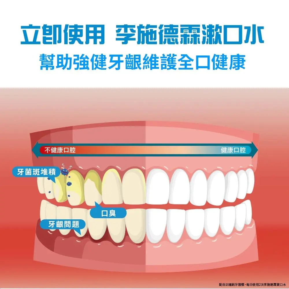 #配合正確刷牙習慣,每日使用2次李施德霖漱口水