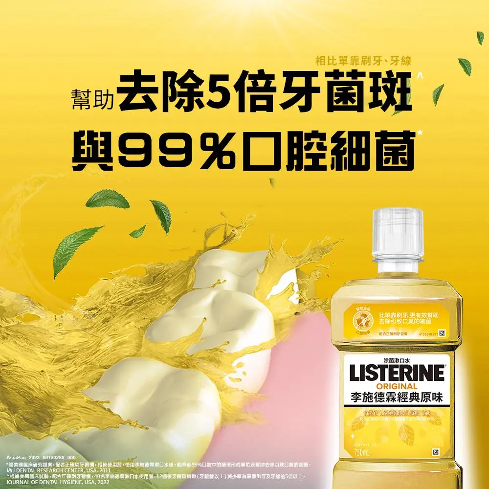 經典除菌配方每天早晚刷牙後使用,可全天候保護口腔全面潔淨比單靠刷牙和牙線有更好的除菌效果特有的4種精油配方,能深入口腔幫助去除牙菌斑,長效清新口氣適合12歲以上兒童及成人天天使用