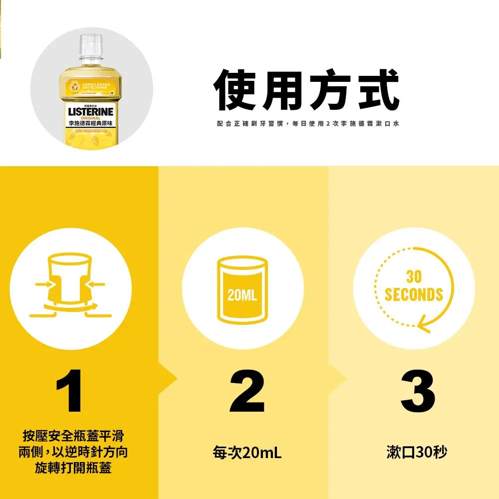#配合正確刷牙習慣,每日使用2次李施德霖漱口水