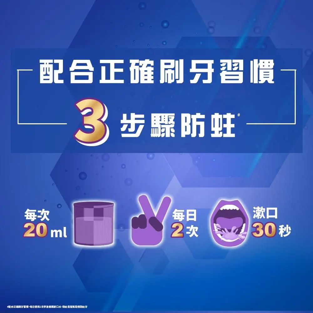 #配合正確刷牙習慣,每日使用2次李施德霖漱口水