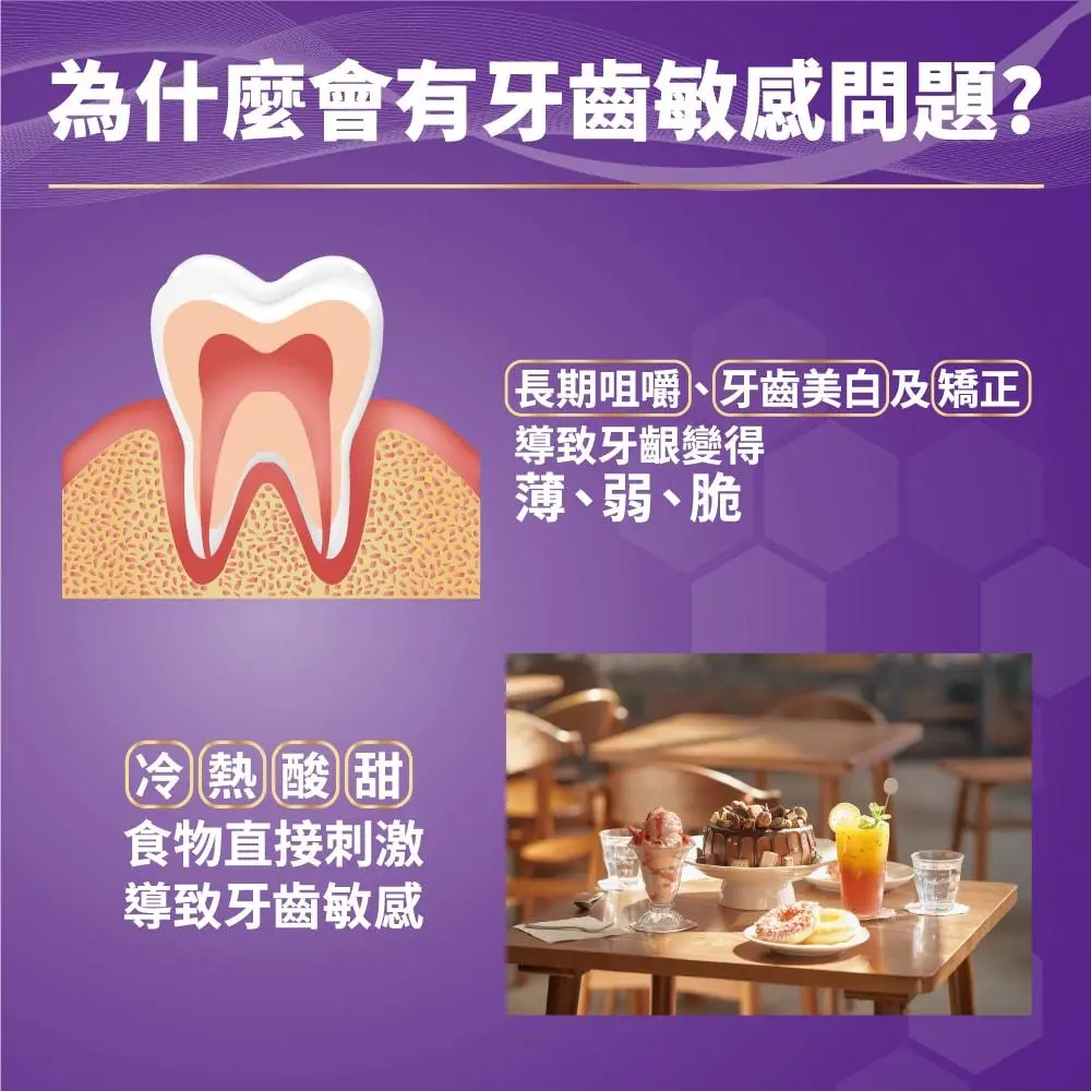 十效合一,深入源頭、舒緩並保護敏感性牙齒。比單使用牙膏,有效對抗敏感牙齒問題