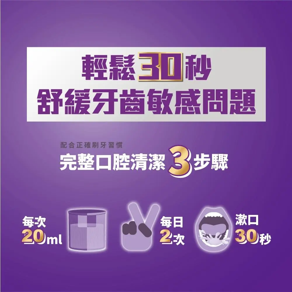 每天早晚各一次作為日常口腔清潔的一部分,每次使用20亳升,漱口30秒,漱遍牙齒及牙齦後吐出。使用時不需稀釋,用後不需再用清水漱口。